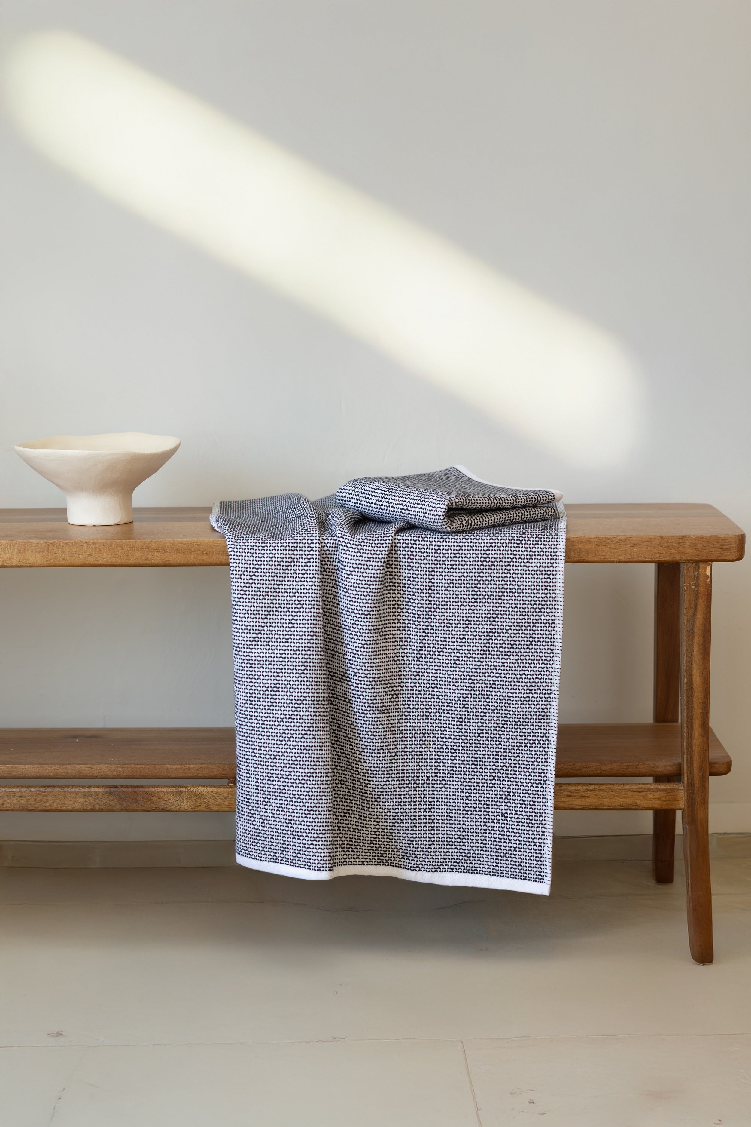 Hemre Çizgili Pamuklu Banyo Havlusu Siyah 90x170cm